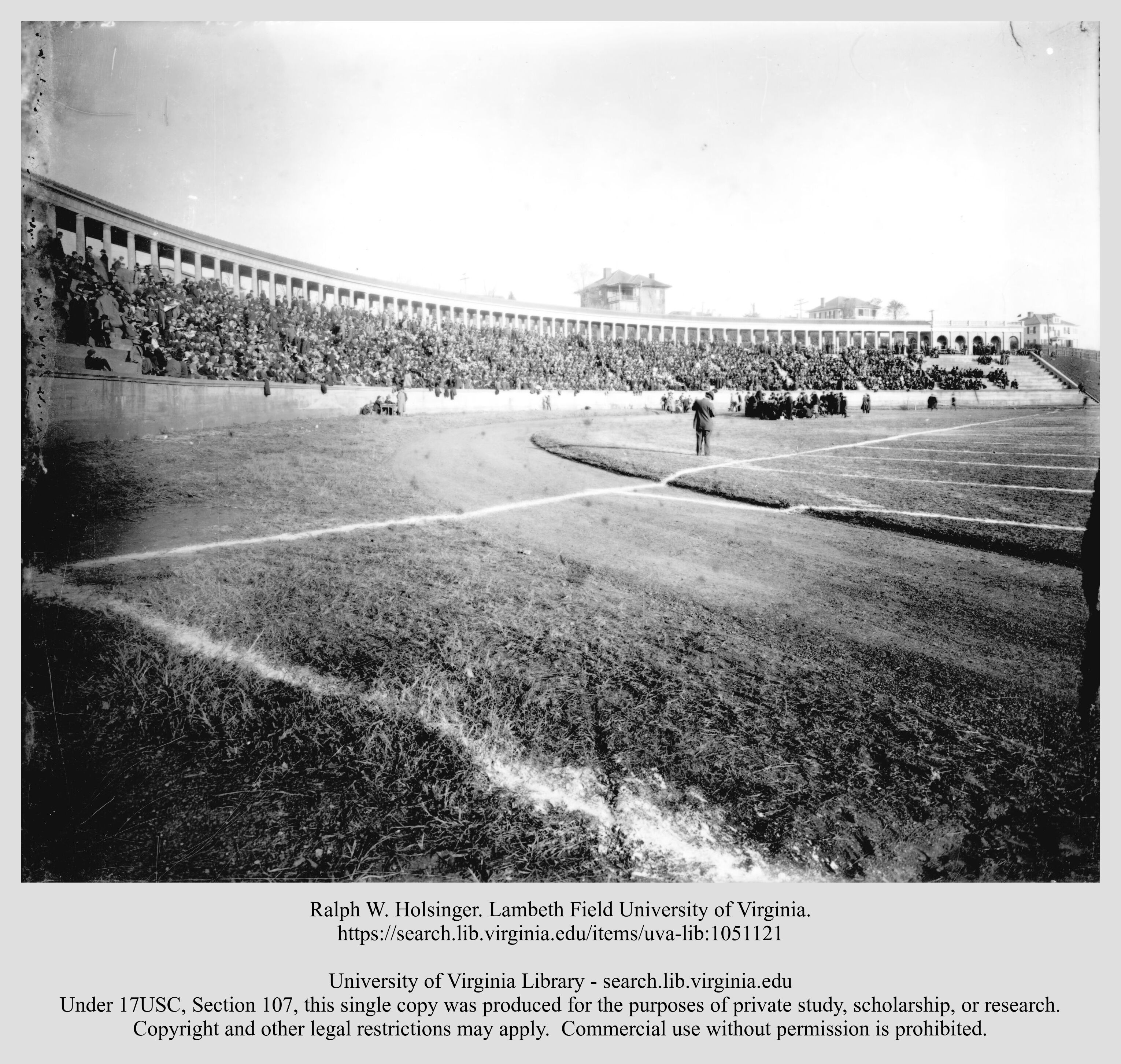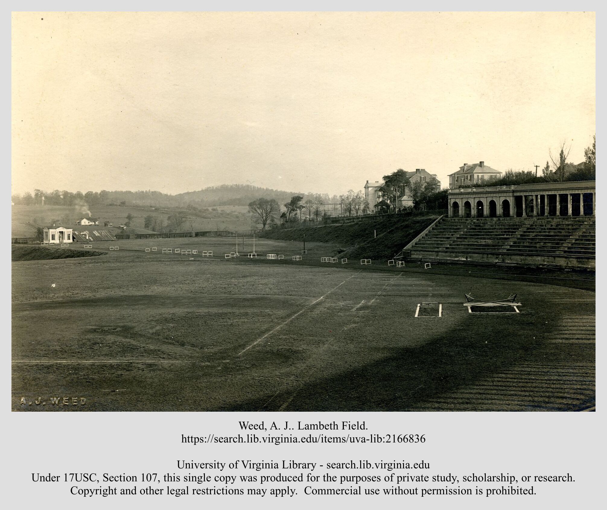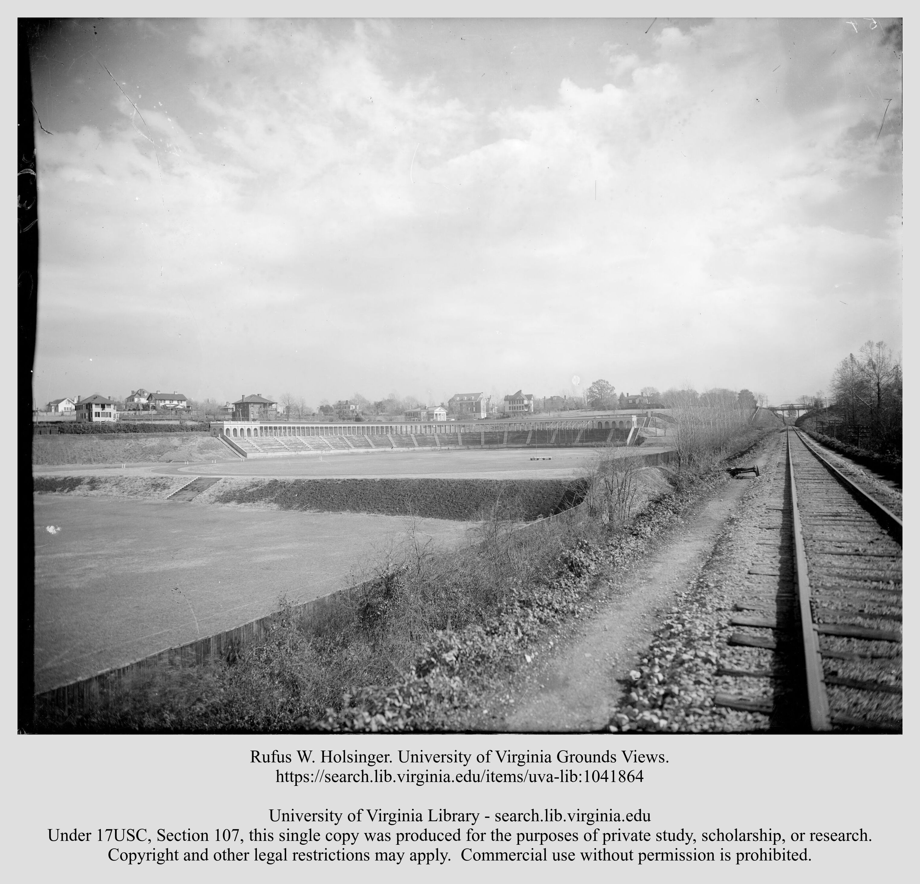 Noting the "rocky" and injury-inducing condition of their prior athletic grounds, Virginia's athletic forces began grading work on the area which would eventually become Virginia's newest athletic field in January 1901. Initially called just "New Athletic Field," the venue was primed to be among the choicest in the South, with a $10k (just over $380k in 2025) pricetag; the sky-high price delayed construction repeatedly throughout the design, with less than half of the total sum raised when the contract was let, despite fundraising efforts starting back in 1895. Much of the reason for the high price was the considerable effort was required to turn the "mountainous locality" selected into the now-iconic earthen bowl structure.